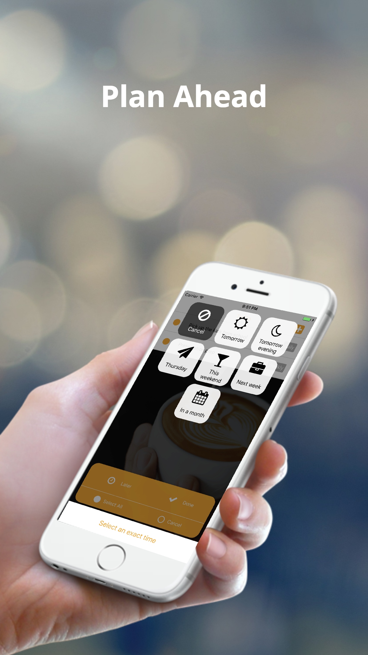 Easily schedule tasks for later - so you can focus on what's next. Don't worry - we'll remind you, Inbox Zero for tasks is here!