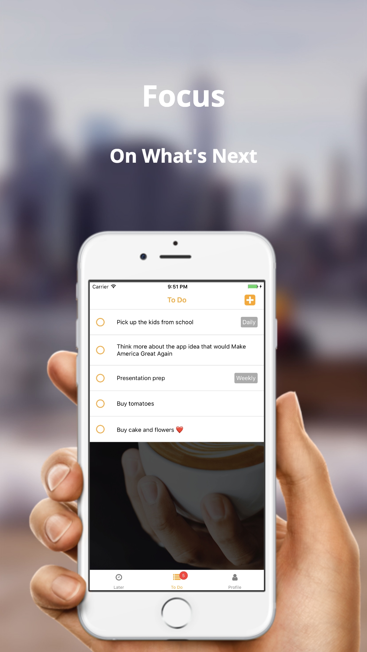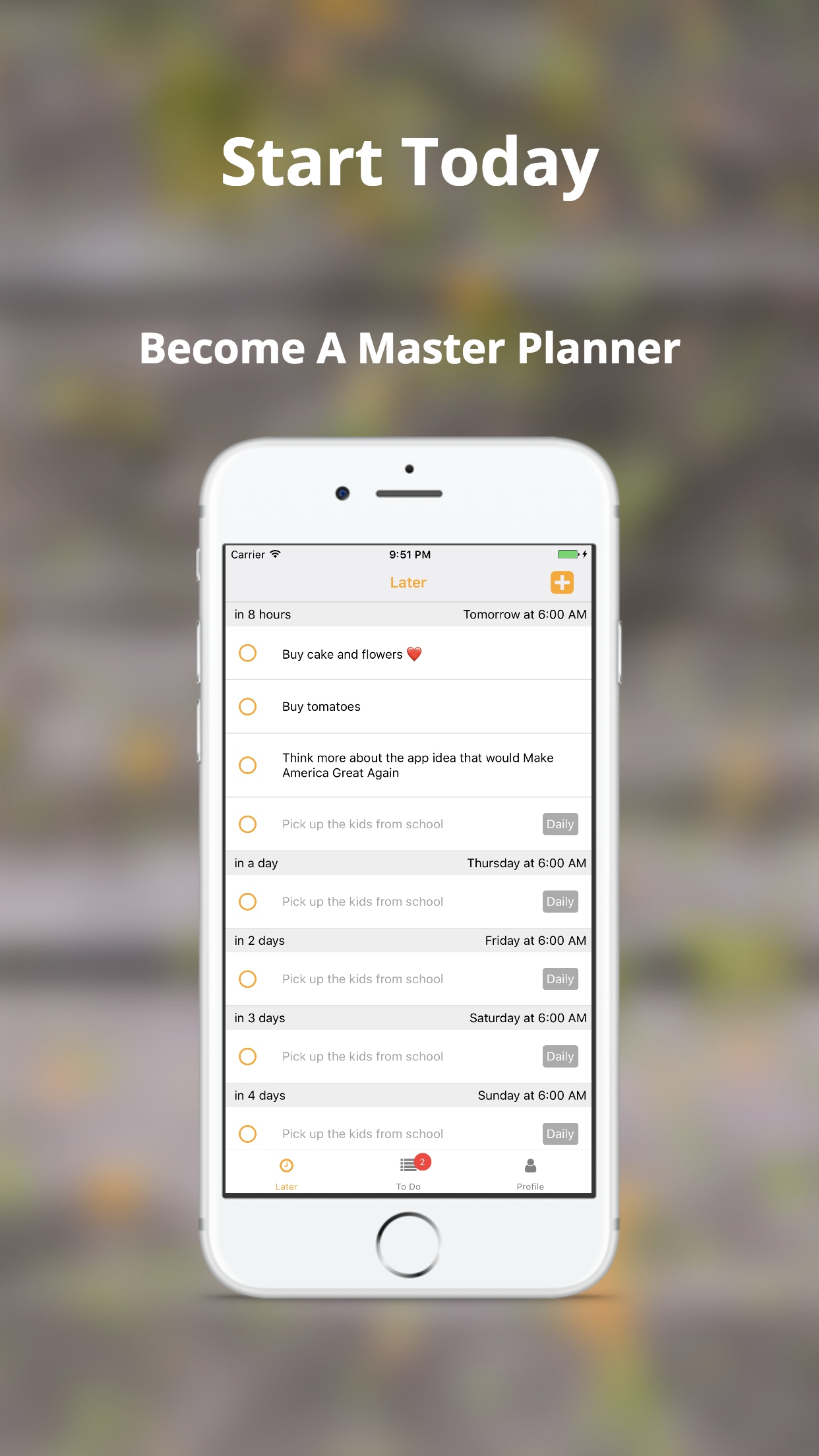 Lyster is all about letting you focus on what's next. Feel good about clearing todays agenda and simultaneously make a great plan for tomorrow.
